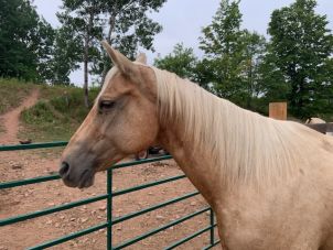 Honey is our oldest mare. She is a palomino with a flaxen mane and the sweetest easy going personality. Honey, unfortunately did not get pregnant, so there will be no foals available from her.