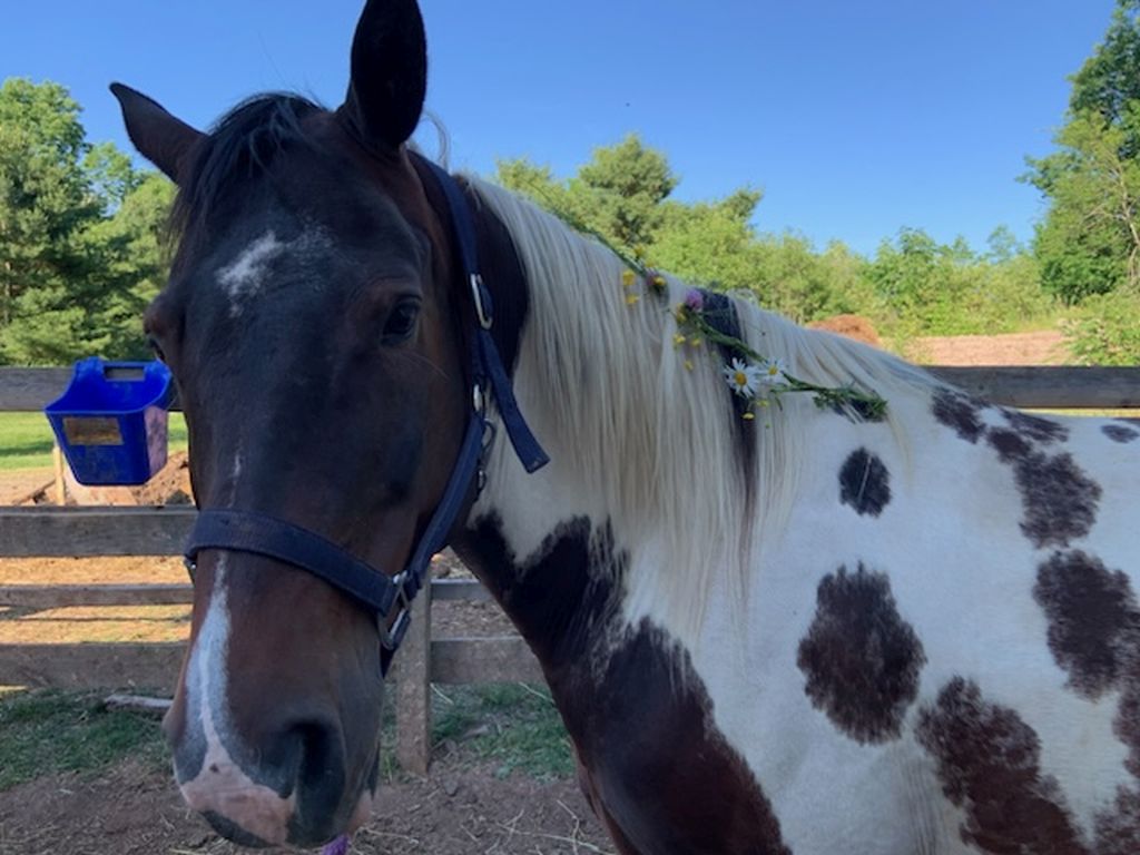 Ruby Ruby Ruby is our bay pinto mare with a massive personality, and an even bigger heart. She offers a compact and athletic build. Ruby stands at 14.2 Hh. She is homozygous for the paint gene, offering 100% chance of having pinto foals!